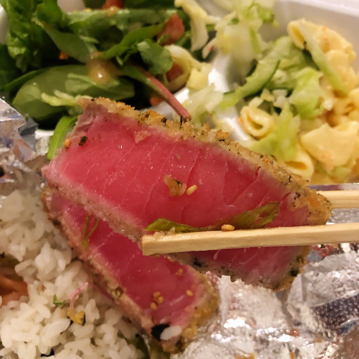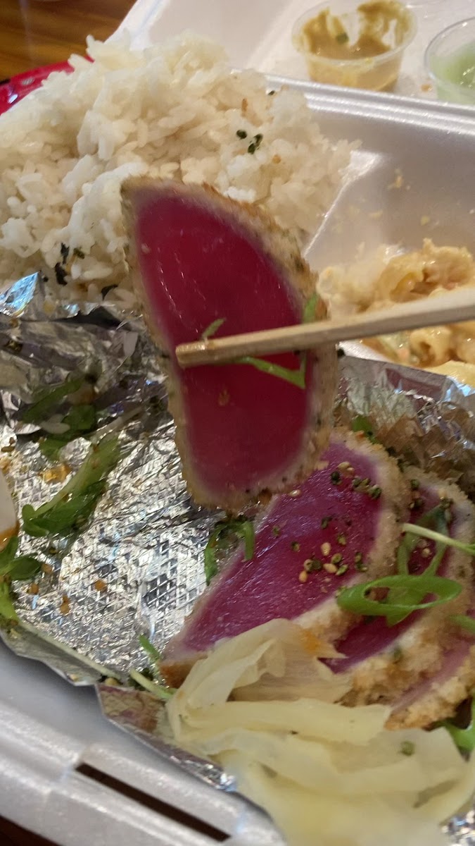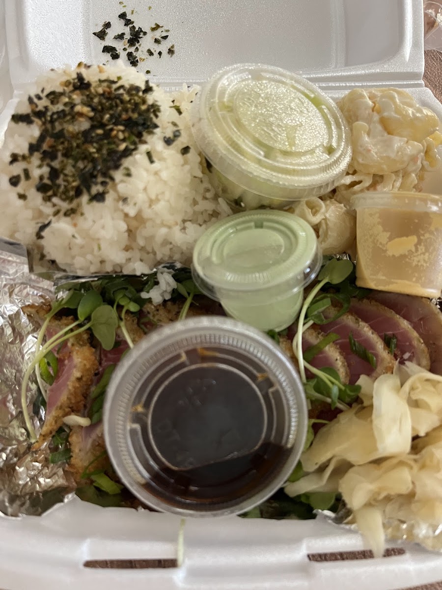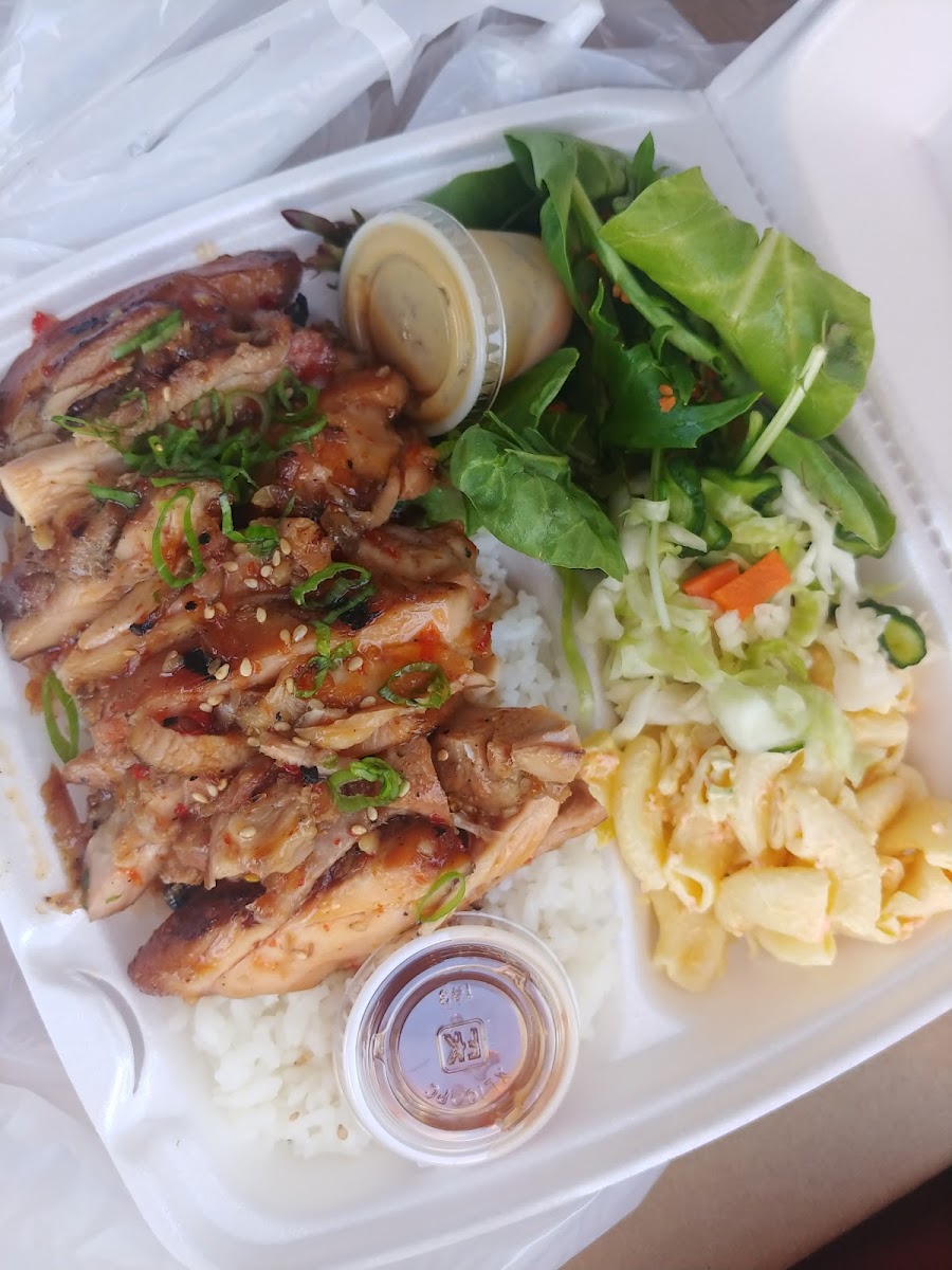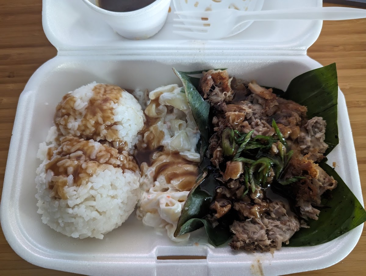 The menu is diverse but sticks close to classic Hawaiian plate lunch territory with Japanese influences—think teriyaki chicken and beef short ribs, poke-inspired dishes like furikake crusted ahi with wasabi aioli, and local favorites such as kalua pork and loco moco. Portions are generous, often leaving diners more than full, and prices reflect a good value when considering the quantity and heartiness of the meals. The addition of things like chicken taquitos with guacamole or a teriyaki avocado burger adds some casual variety beyond the plate lunches.